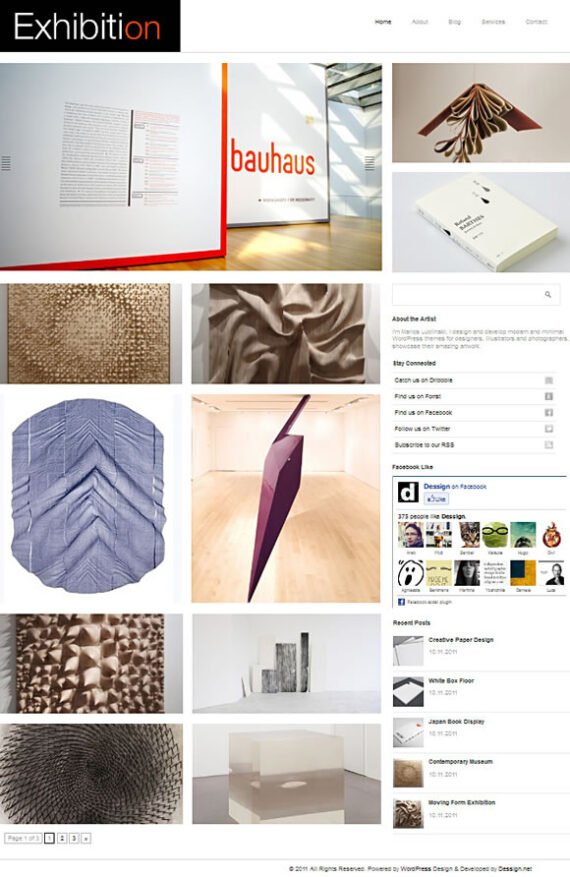 Exhibition Theme by Dessign.net is clean and modern WordPress theme with a blog like design. This is perfect theme for any artist to showcase their portfolio and blog about their work. Theme Features: Valid XHTML [Read More]