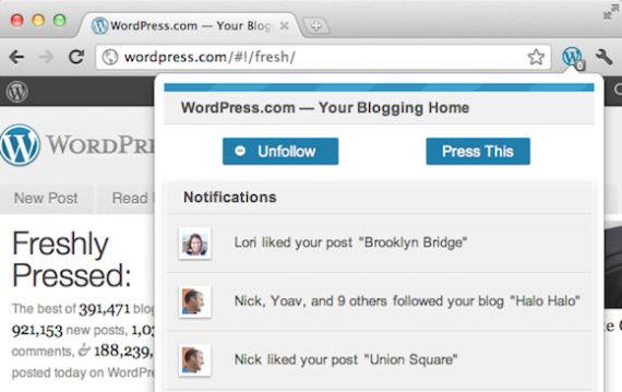 WordPress has announced the launch of a new WordPress.com Chrome extension which sends notifications instantly as you get a new follower or a new like on one of your posts, a notification will appear in [Read More]