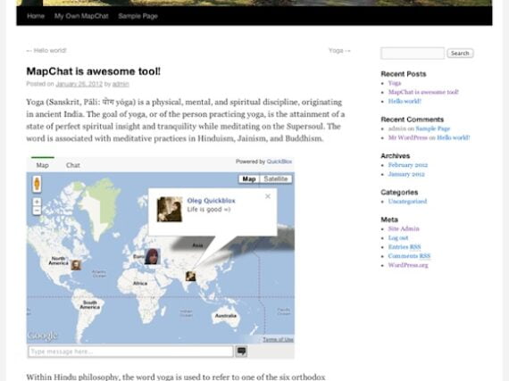 QuickBlox MapChat Widget is a WordPress plugin by QuickBlox Team that adds a MapChat (chat integrated with map) widget to your website. You can chat over a map or in chat room. Build your own [Read More]