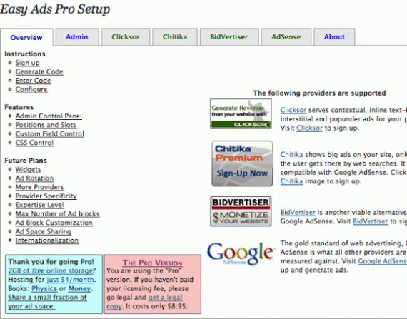 Easy Ads Lite is a WordPress plugin by manojtd that provides a unified and intuitive interface to manage multiple ad providers on your blog. Currently supported are Chitika, BidVertiser, Clicksor, and, of course, AdSense. The [Read More]