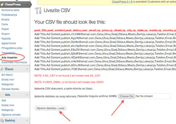 ClassiPress Ads Importer plugin is a WordPress plugin by anaisa that creates or update users, user’s ads, categories in ONE STEP via CSV file. If user or ad category doesn’t exist it will create it! [Read More]
