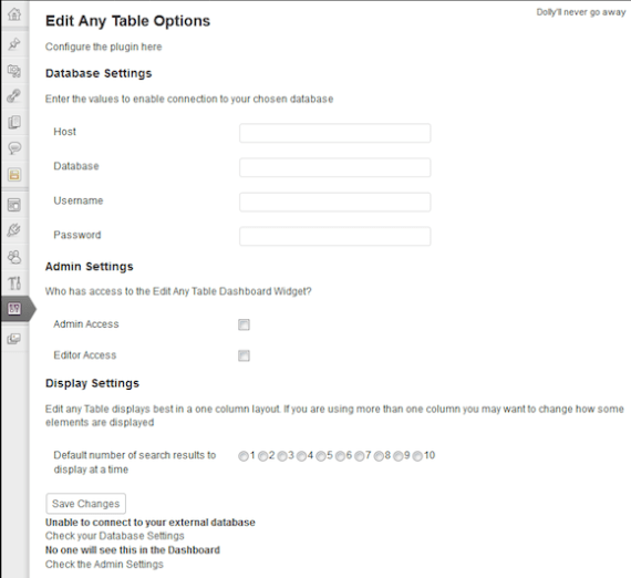 Edit Any Table is a plugin for WordPress by redeyedmonster that allows you to connect to any MySQL database of your choice (as long as your hosting allows) and search, edit, add and delete records [Read More]